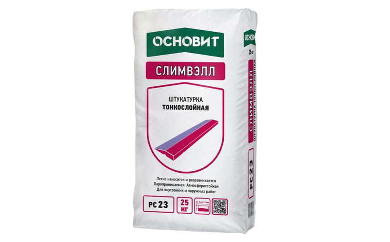 Штукатурка ОСНОВИТ СЛИМВЭЛЛ PC23 предназначена для выравнивания стен из бетона, кирпича и ячеистого бетона. Рекомендуется для отделки фасадов, цоколей, подвалов, помещений с любой степенью влажности. Для внутренних и наружных работ.