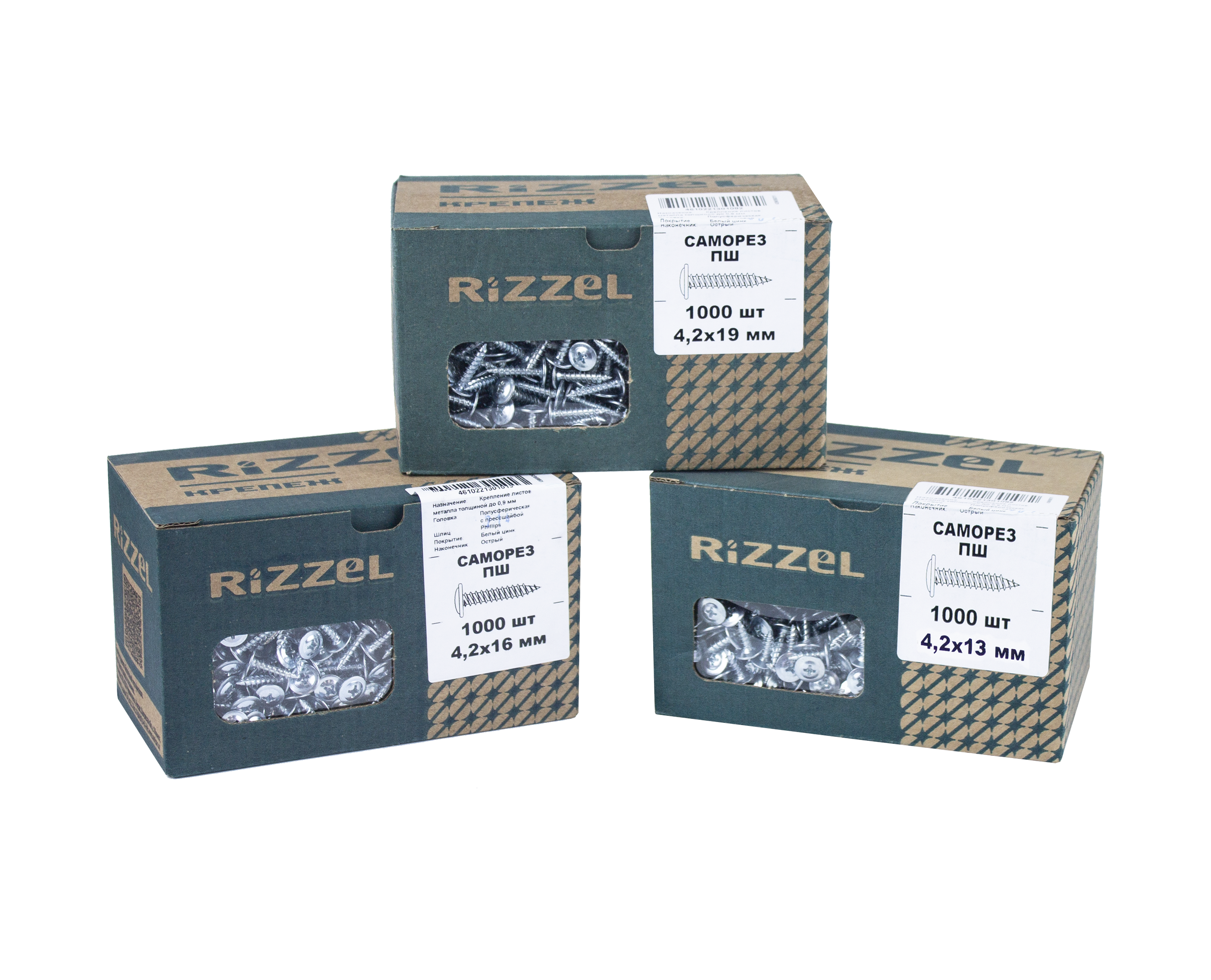 Саморез ПШ Rizzel 4,2х19 (1000шт) шлиц PH2, цинк