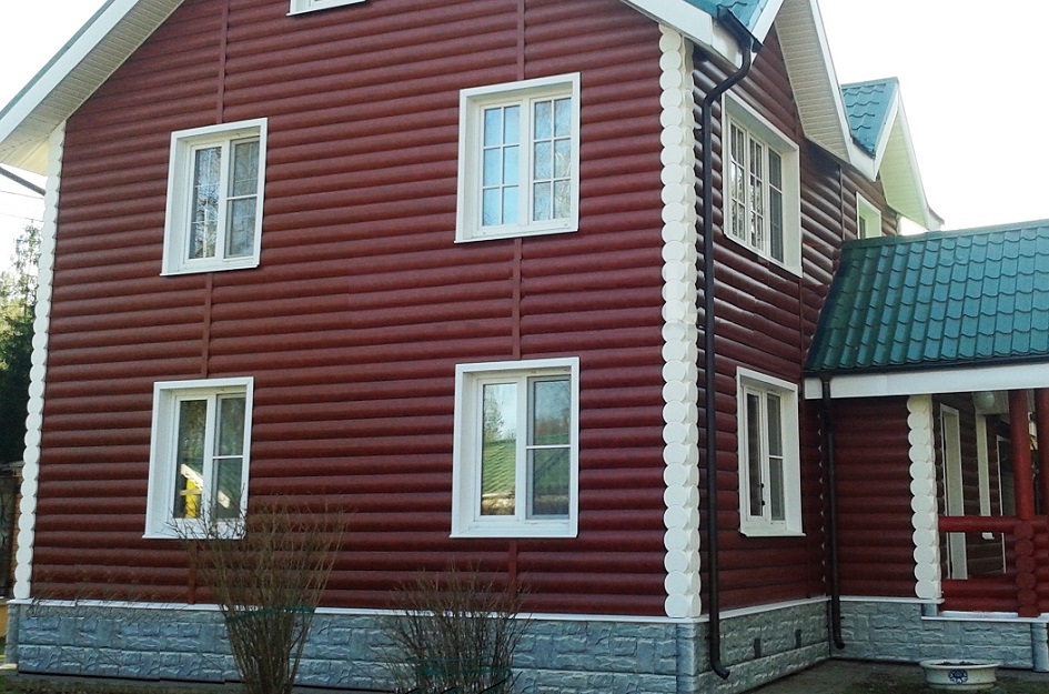 • В отличие от облицовки фасада деревом, сайдинг под бревно металлический «Блок-хаус GL» прост в монтаже и не требует дополнительного послемонтажного ухода.