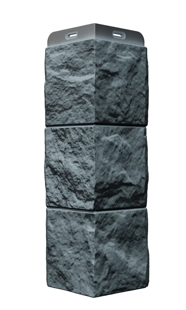Углы в цвете «перламутровый» — идеальное дополнение для фасадных панелей с эффектом крупноформатной каменной кладки. Спокойный многогранный цвет и швы в тон материала делают стык панели и угла практически незаметным.
