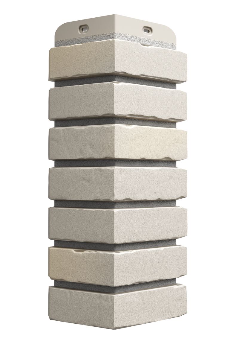 Углы «монте» — идеальное дополнение для фасадных панелей с имитацией кладки из белого клинкерного кирпича. Плавный переход цвета от уютного бежевого к натуральному доломитовому оттенку сделает стык панели и угла практически незаметным.